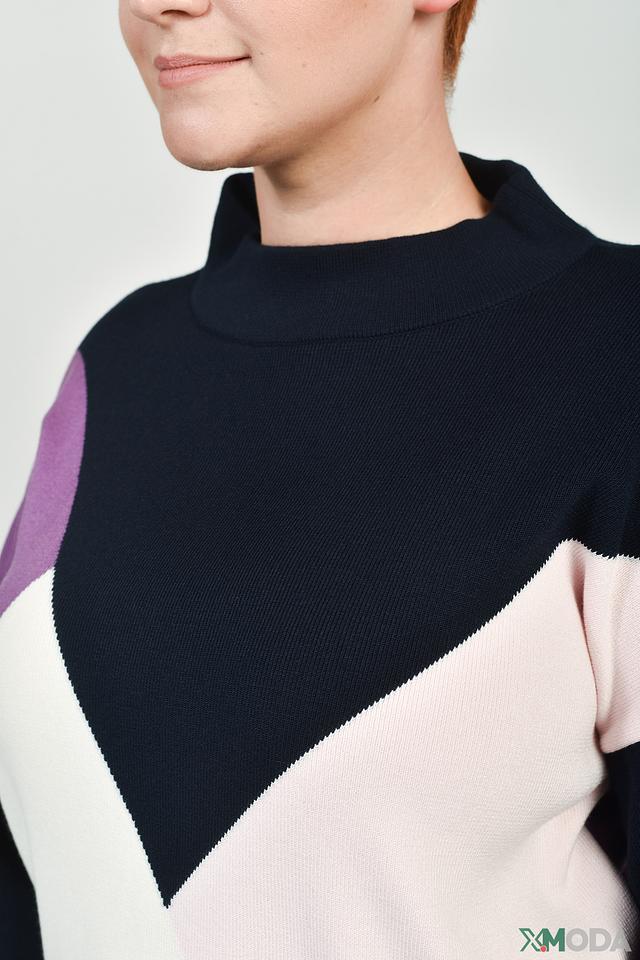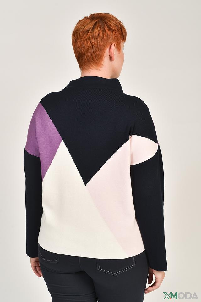 Этот стильный пуловер от Eugen Klein станет прекрасным дополнением к вашему гардеробу. Модель выполнена в тёмно-синей цветовой гамме и украшена геометричным узором, состоящим из бежевых, лиловых и светло-розовых вставок.