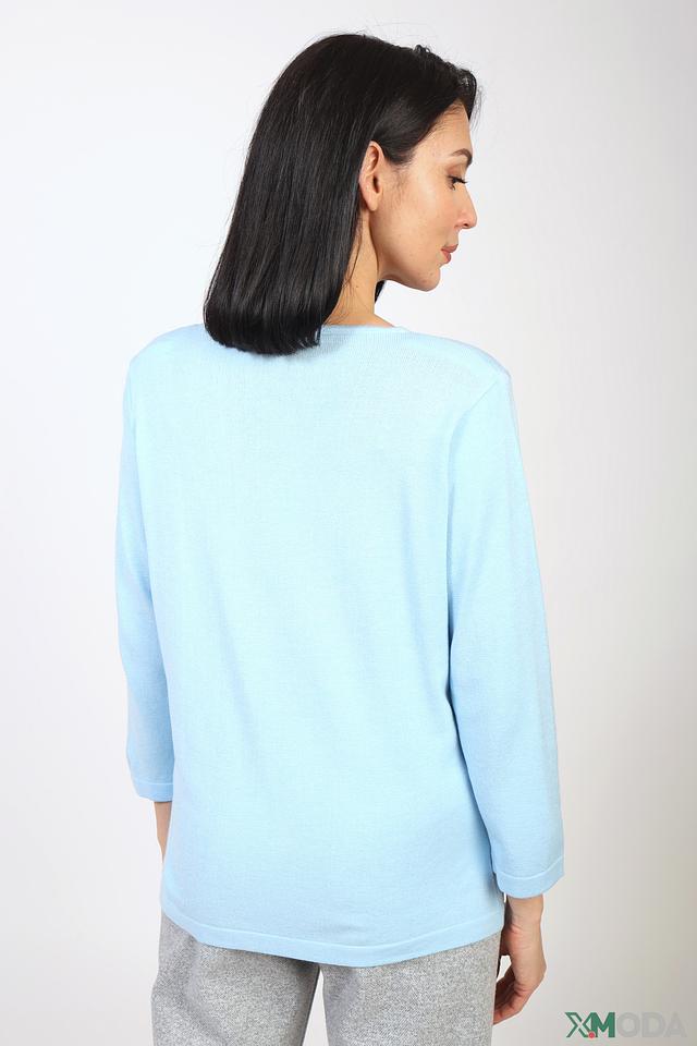 Пуловер имеет удобный V-образный вырез и рукава три четверти, что делает его идеальным для создания как повседневных, так и более нарядных образов. Мягкий трикотаж обеспечивает комфорт при носке, а состав из модала, полиакрила и полиамида гарантирует долговечность изделия.