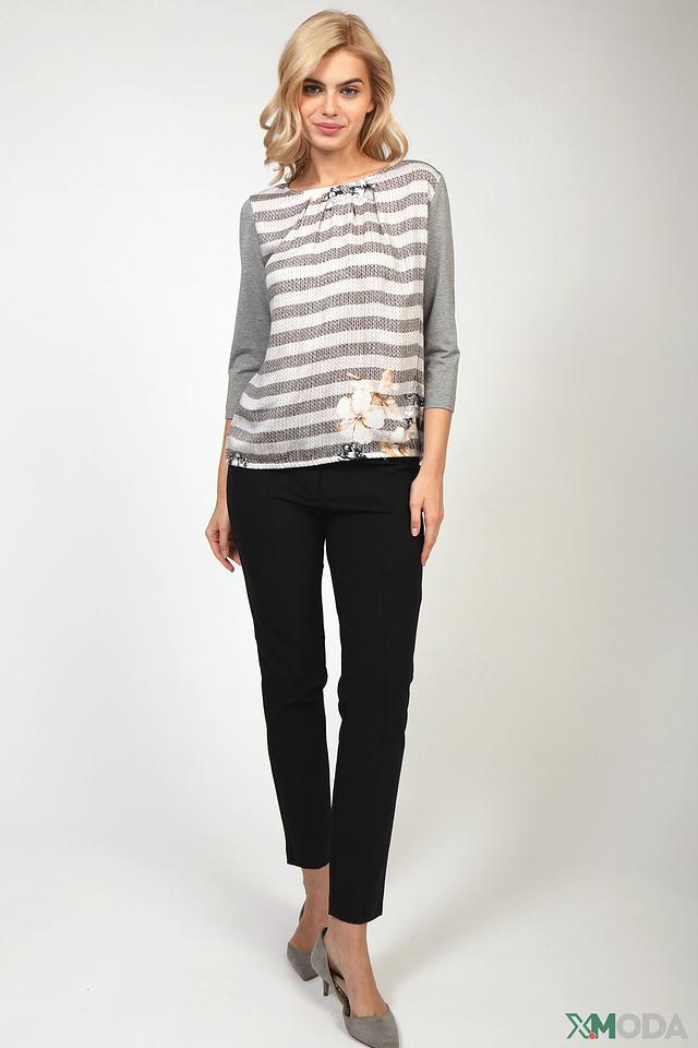Блуза Eugen Klein серого цвета с полосатым принтом и цветочным декором. Модель выполнена из мягкой вискозы с добавлением эластана, что обеспечивает комфорт в носке и хорошую посадку по фигуре. Состав: вискоза 93%, эластан 7%