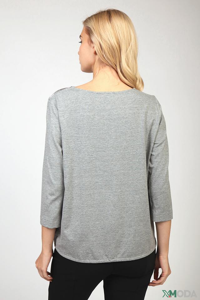 Модель имеет округлый вырез горловины, который украшен небольшим воротничком с декоративными цветами. Рукава блузы – три четверти, что делает ее идеальным выбором для теплой погоды. Свободный крой обеспечивает комфорт и свободу движений.