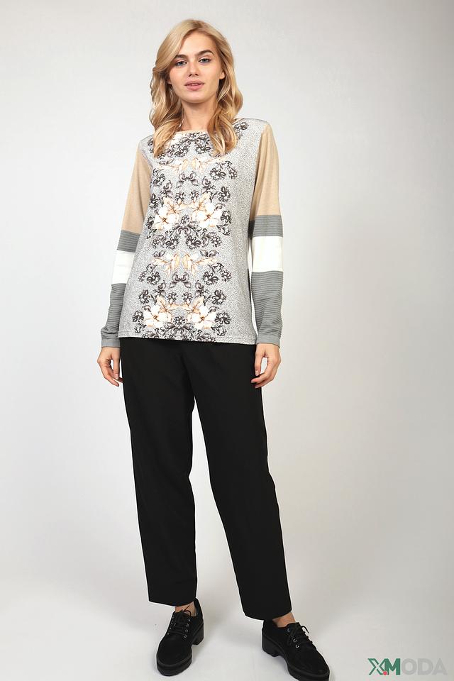 Женский пуловер Eugen Klein серого цвета с цветочным принтом и контрастными вставками. Модель выполнена из мягкого и приятного к телу трикотажа, сочетающего в себе модал, полиакрил и полиамид. Состав: модал 46%, полиакрил 40%, полиамид 14%