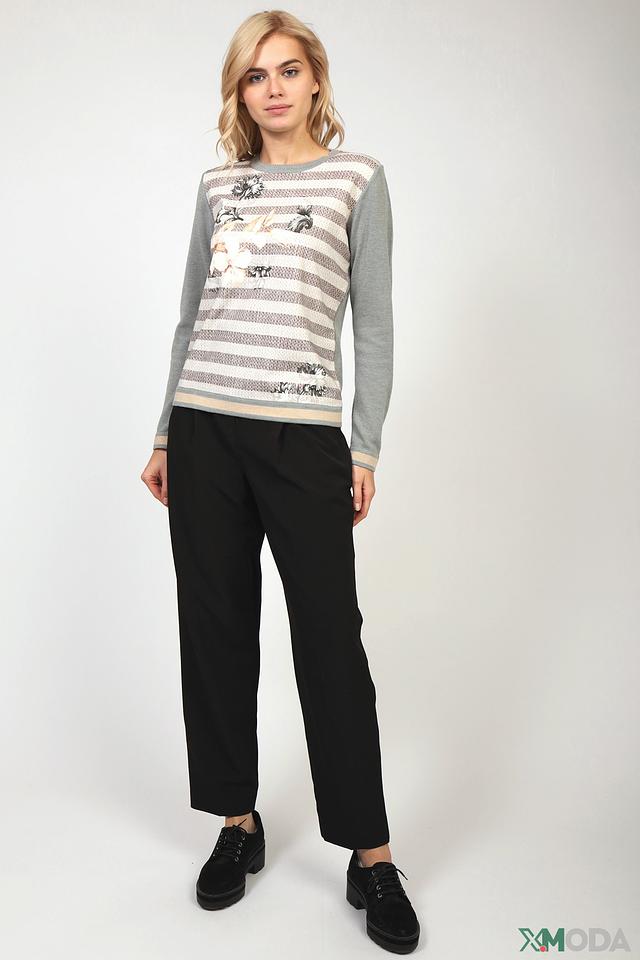 Женский пуловер Eugen Klein серого цвета с полосатым рисунком и цветочным принтом. Модель выполнена из мягкого и приятного к телу трикотажа, идеально подходит для создания комфортных и стильных образов. Состав: модал 46%, полиакрил 40%, полиамид 14%