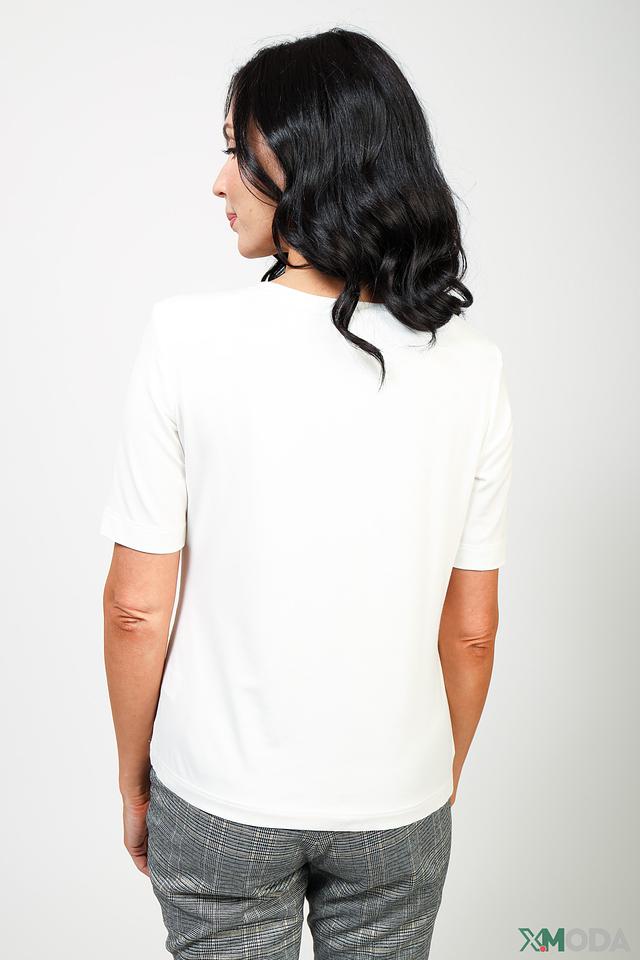 Состав ткани: 93% вискоза, 7% эластан. Эта комбинация материалов обеспечивает легкость, воздухопроницаемость и эластичность изделия. Футболка легко стирается и быстро сохнет. Она прекрасно сочетается с джинсами, брюками, юбками и шортами, позволяя создавать разнообразные образы.