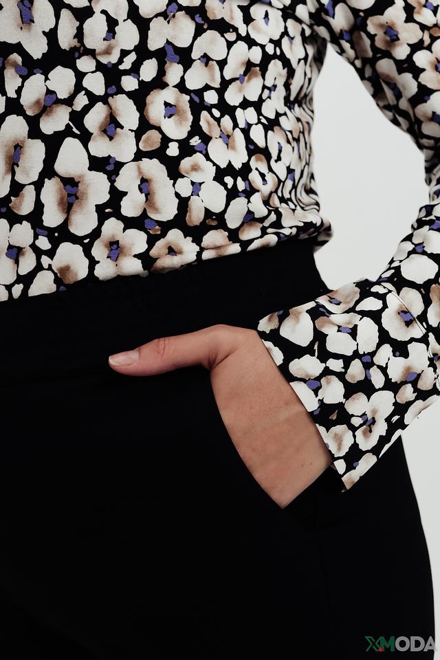 Состав ткани: 67% полиэстер, 29% вискоза, 4% эластан. Такое сочетание материалов обеспечивает приятные тактильные ощущения, хорошую воздухопроницаемость и устойчивость к сминанию.
