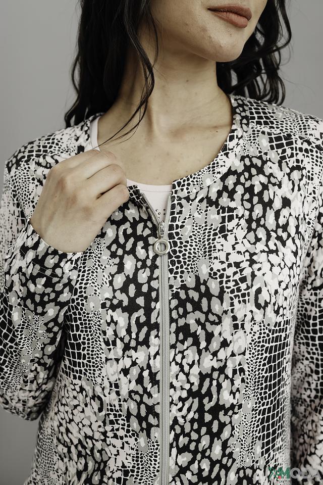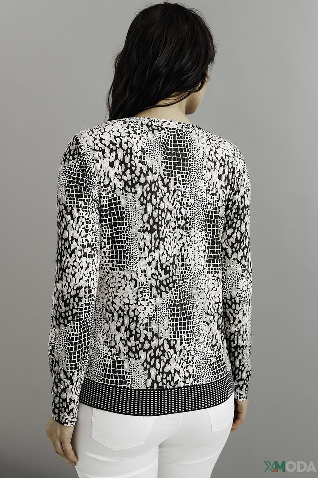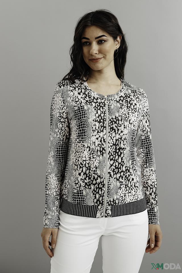 Жакет Eugen Klein чёрно-белого цвета с оригинальным леопардовым принтом станет стильным дополнением к вашему гардеробу. Модель на молнии с округлым вырезом и длинными рукавами. Состав: вискоза 93%, эластан 7%