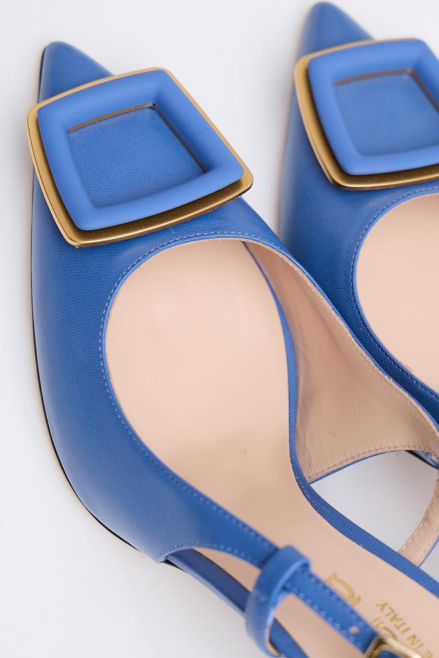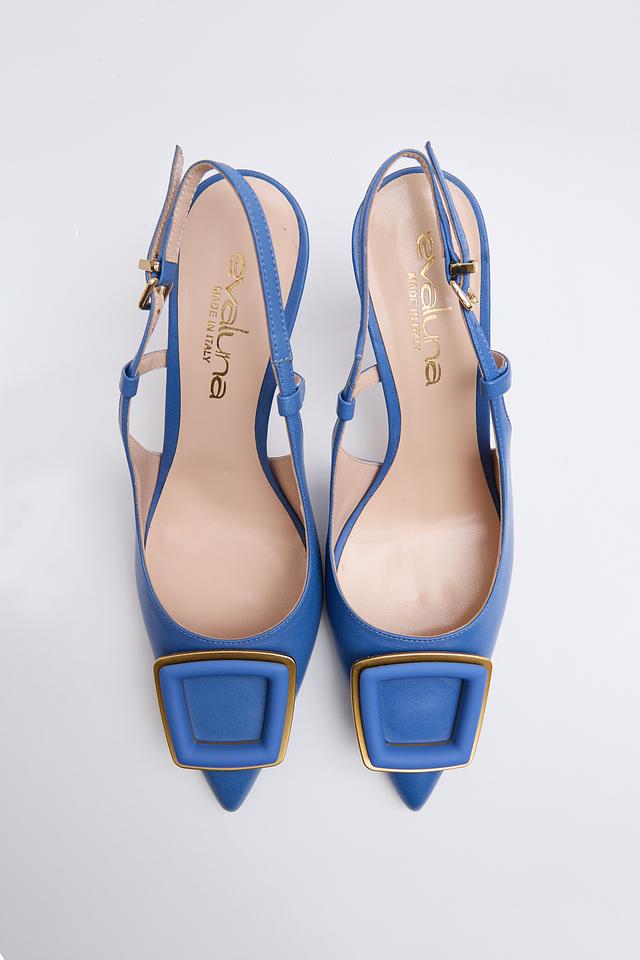 Синие туфли-лодочки от Evaluna с элегантной золотистой пряжкой. Модель выполнена из натуральной кожи и имеет удобный каблук-рюмочку, что делает их идеальным выбором для создания стильного образа. Состав: кожа 100%, Состав_низ кожа 100%, Состав_подкладка кожа 100%