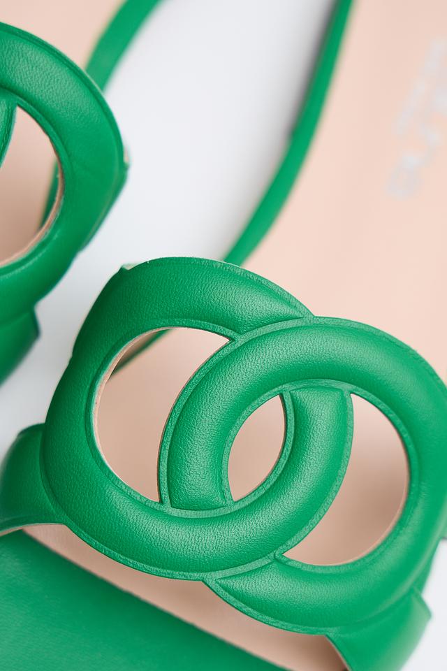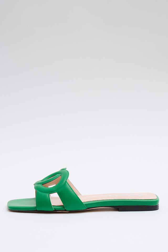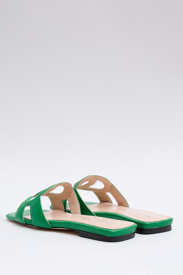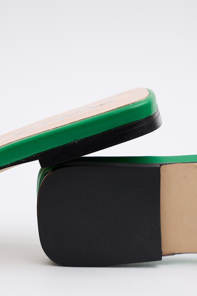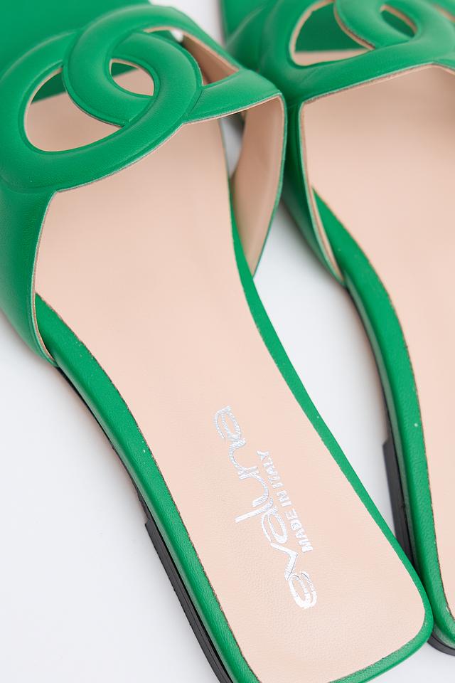 Женские шлепанцы Evaluna зеленого цвета с оригинальным дизайном. Модель выполнена из натуральной кожи, отличается удобной плоской подошвой и стильным декором в виде переплетенных элементов. Состав: кожа 100%, Состав_низ кожа 100%, Состав_подкладка кожа 100%