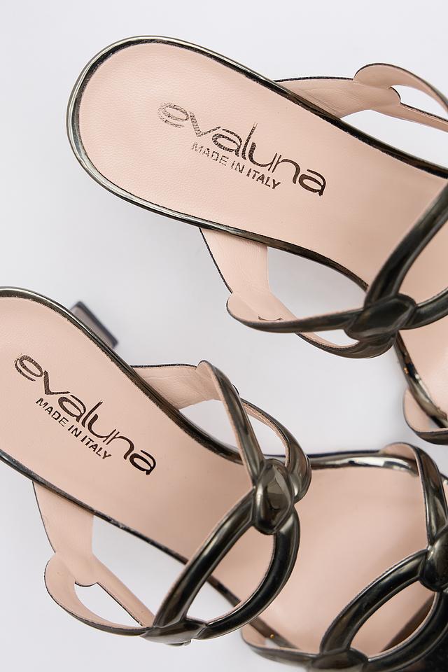 Босоножки Evaluna оливкового цвета – элегантная модель с оригинальным дизайном. Открытый носок и изящный каблук придают образу женственность, а декоративные узлы добавляют изюминку. Состав: кожа 100%, Состав_низ кожа 100%, Состав_подкладка кожа 100%