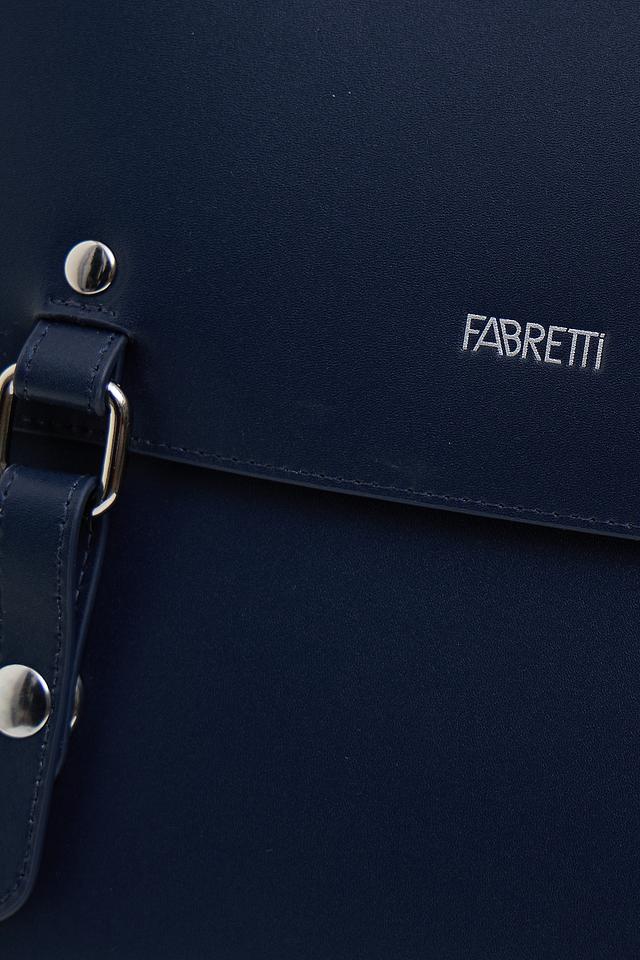 Внешний дизайн рюкзака дополнен аккуратными деталями, такими как металлическая фурнитура и декоративные ремни. Логотип Fabretti на лицевой стороне подчеркивает принадлежность к бренду. Внутреннее пространство рюкзака организовано для удобного хранения вещей.