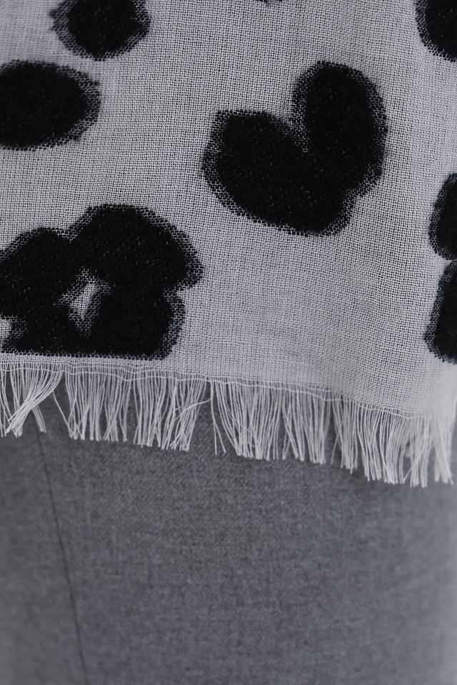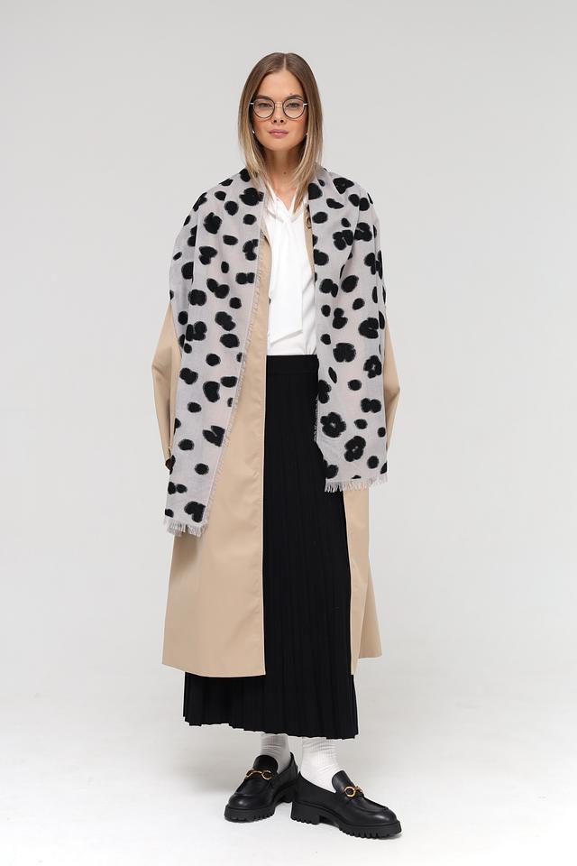 Этот шарф от Fraas – идеальный аксессуар для создания модного и завершенного образа. Шарф выполнен в светло-серой цветовой гамме и украшен контрастным черным леопардовым принтом, что придает ему выразительность и динамичность.