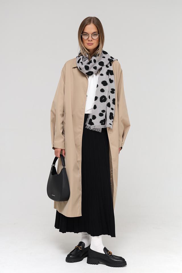 Шарф имеет классическую прямоугольную форму и дополнен аккуратной бахромой по краям, что добавляет ему изысканности. Он прекрасно сочетается с верхней одеждой, пальто, куртками и повседневной одеждой, позволяя создавать разнообразные стильные образы.