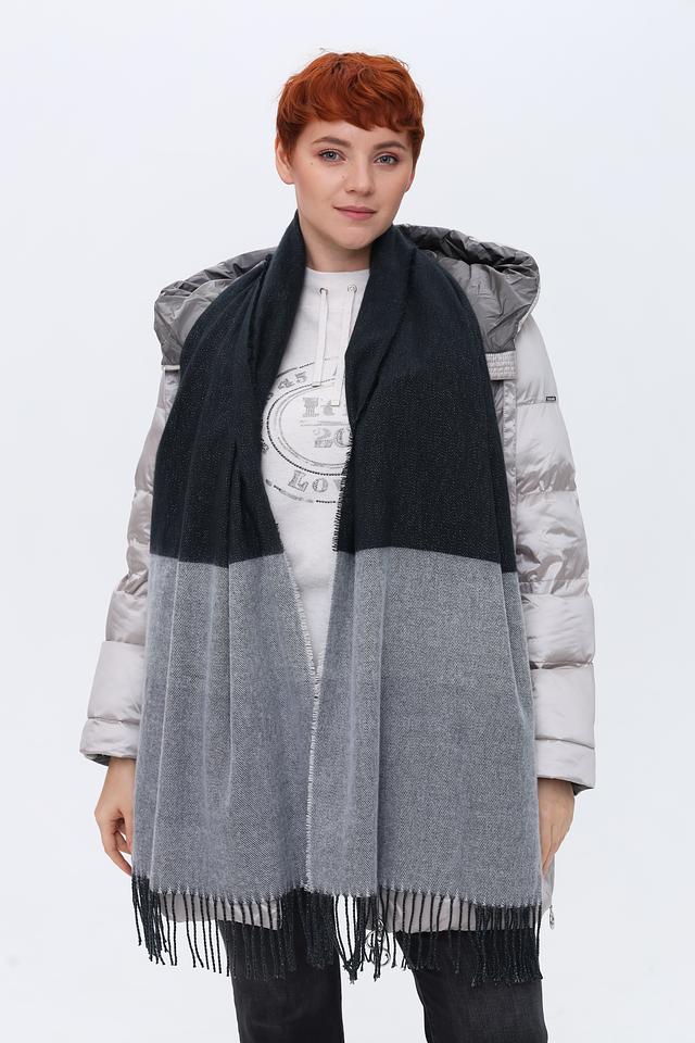 Шарф имеет прямоугольную форму и украшен бахромой по краям, что придает ему изысканный вид. Изготовлен из 100% полиэстера, что обеспечивает мягкость, легкость и долговечность изделия.