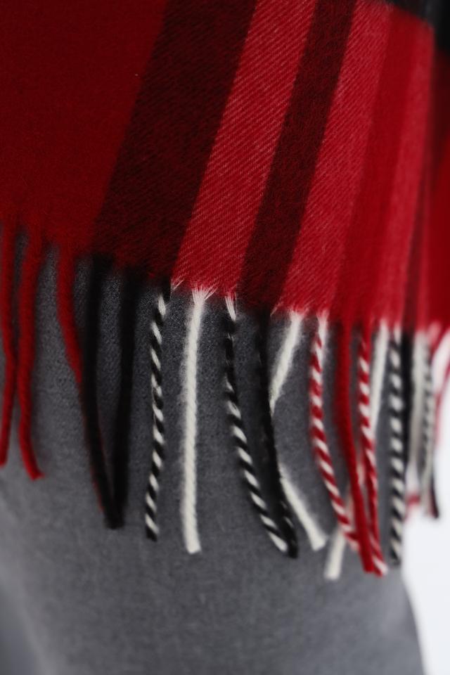 Этот шарф от Fraas станет ярким акцентом в вашем гардеробе. Выполнен в классической клетке, сочетающей в себе оттенки красного, чёрного, белого и серого. Шарф имеет прямоугольную форму и украшен бахромой по всему периметру, что придает ему дополнительный шарм.