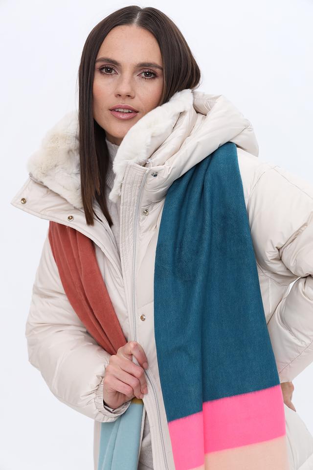 Этот шарф от Fraas станет ярким акцентом в вашем образе. Изделие выполнено в многоцветном дизайне, сочетающем в себе оттенки синего, розового, оранжевого и голубого.