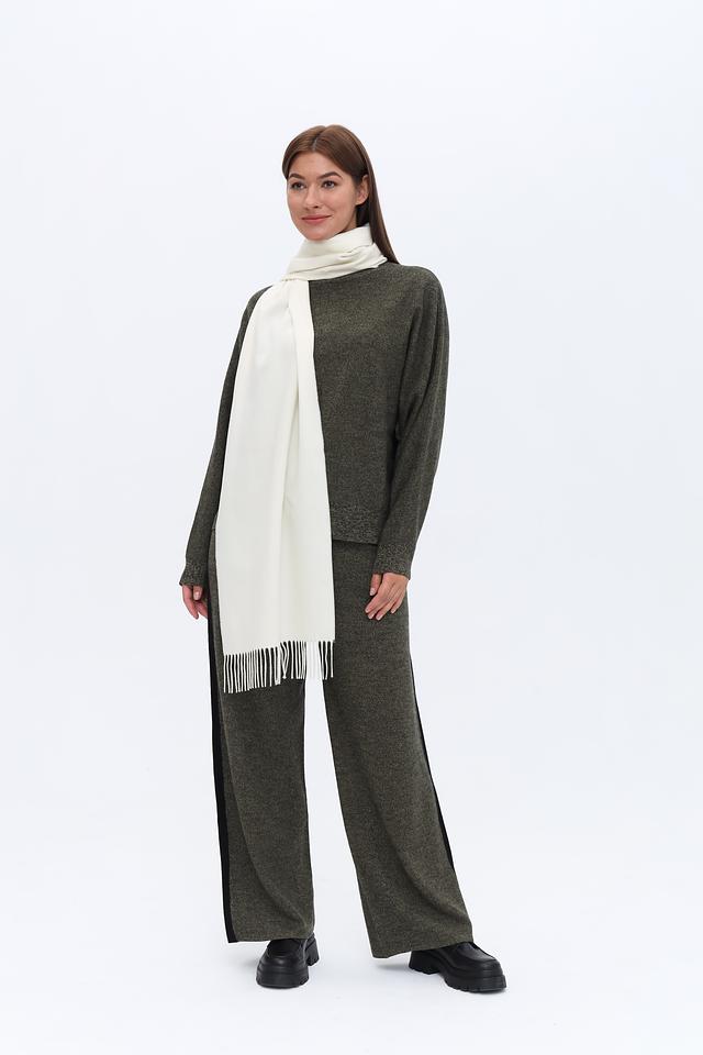 Шарф изготовлен из 100% полиакрила, что обеспечивает мягкость, комфорт и простоту в уходе. Декоративная бахрома по краям придает шарфу изысканный вид.