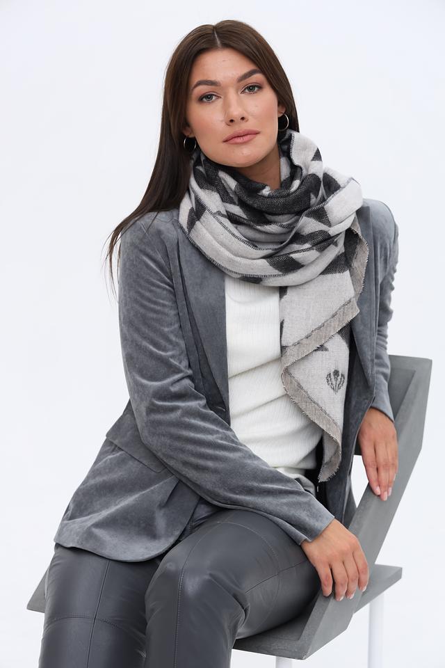 Стильный шарф Fraas серого цвета с клетчатым принтом станет отличным дополнением к вашему образу. Изготовлен из мягкого полиэстера, обеспечивающего комфорт и тепло в холодную погоду. Состав: полиэстер 100%