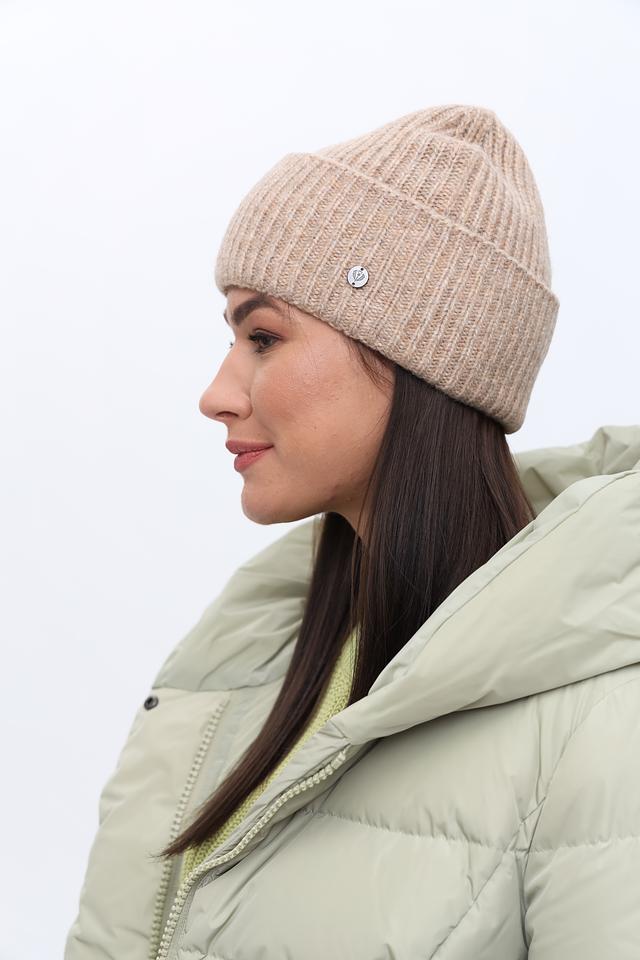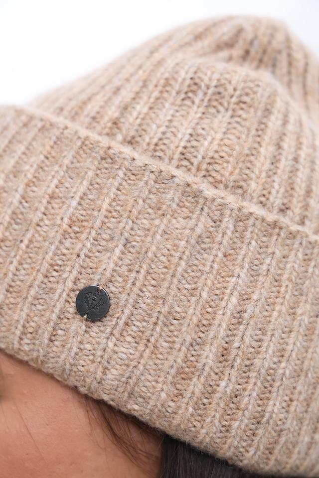 На шапке присутствует небольшой логотип бренда, который добавляет ей элегантности и узнаваемости. Универсальный дизайн позволяет сочетать эту шапку с различными стилями одежды, от повседневного до более формального.