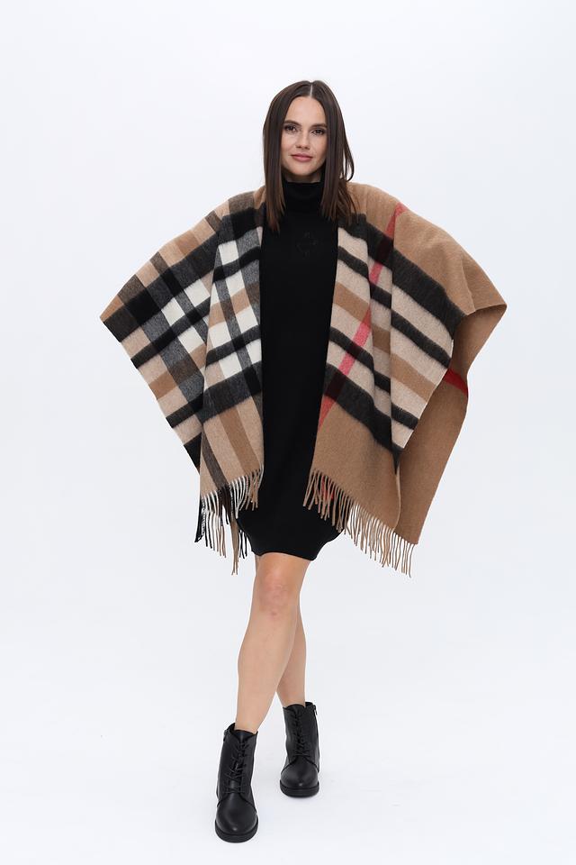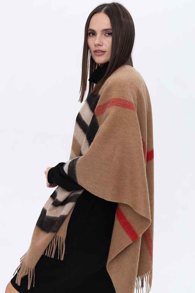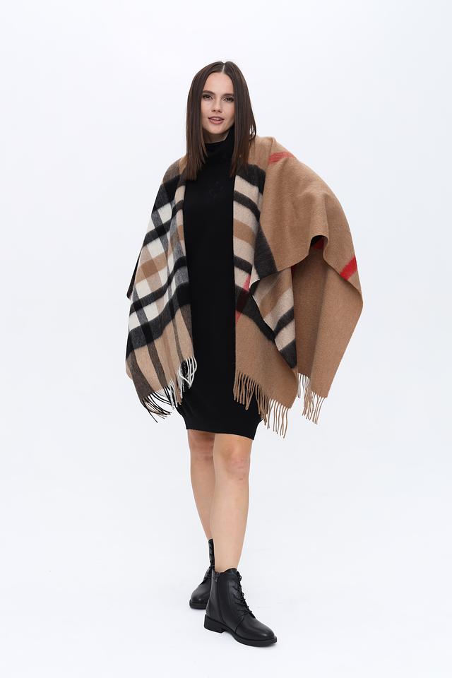 Это элегантное пончо от Fraas выполнено в бежевой цветовой гамме и украшено традиционной клеткой, сочетающей в себе оттенки бежевого, коричневого, белого и красного. Пончо имеет свободный крой, который обеспечивает комфорт и свободу движений.