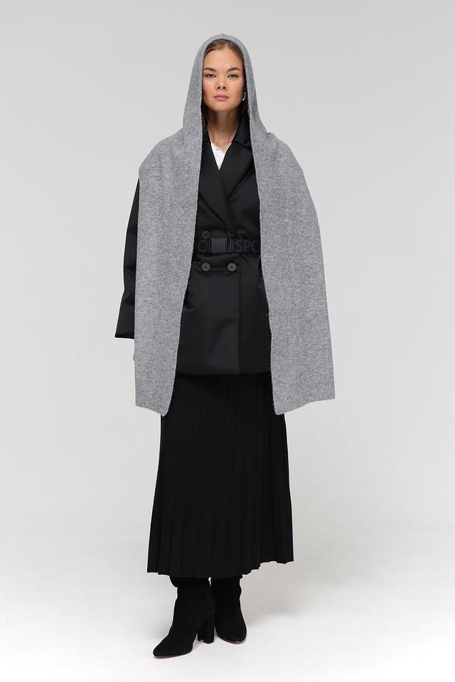 Шарф имеет крупную вязку, которая придает ему объем и фактурность. Его можно носить различными способами: как обычный шарф, накинув на плечи, или используя капюшон для дополнительной защиты. Благодаря своему универсальному дизайну, этот шарф легко сочетается с верхней одеждой разных стилей.