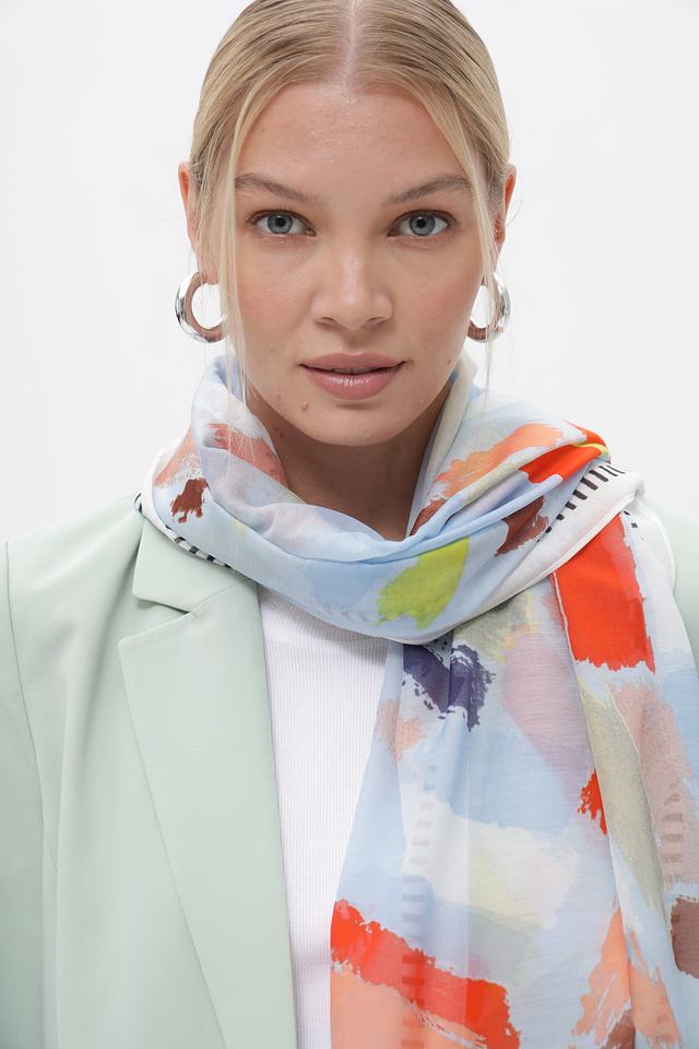 Шарф Fraas светло-голубого цвета с ярким абстрактным принтом станет стильным дополнением к вашему образу. Изготовлен из мягкого хлопка с добавлением шелка, обеспечивающего приятные тактильные ощущения и элегантный вид. Состав: хлопок 70%, шелк 30%