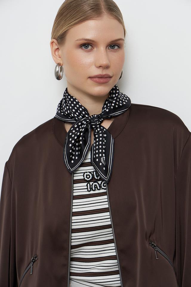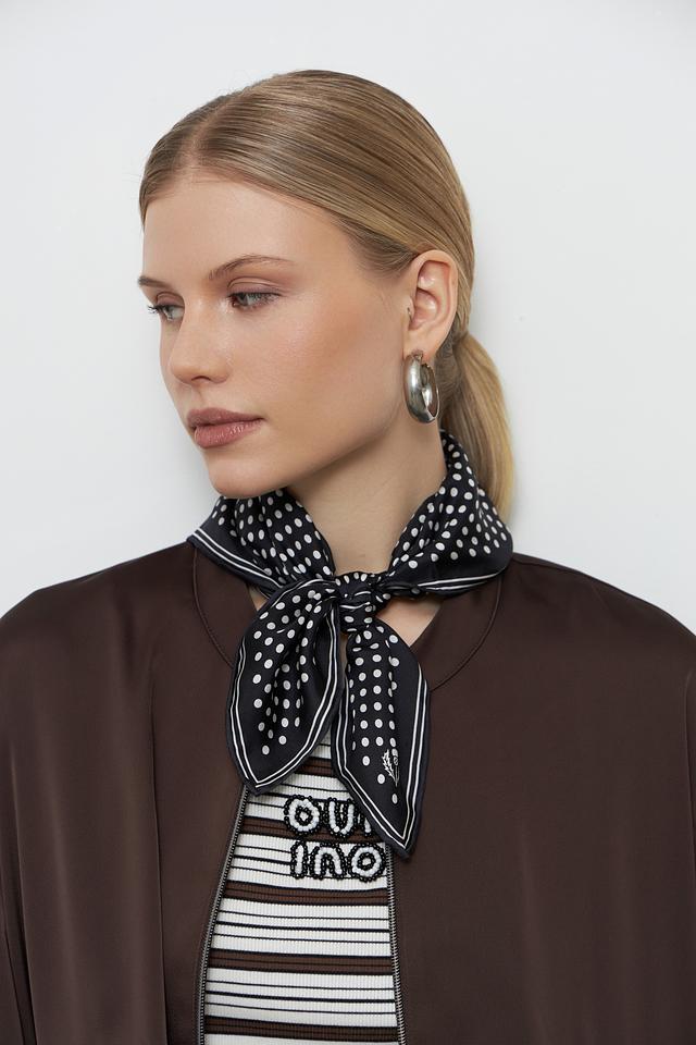 Этот шарф от Fraas – элегантный и универсальный аксессуар, выполненный из 100% шёлка. Преобладающий цвет – чёрный, дополненный классическим белым горошком, что придает изделию особый шарм.