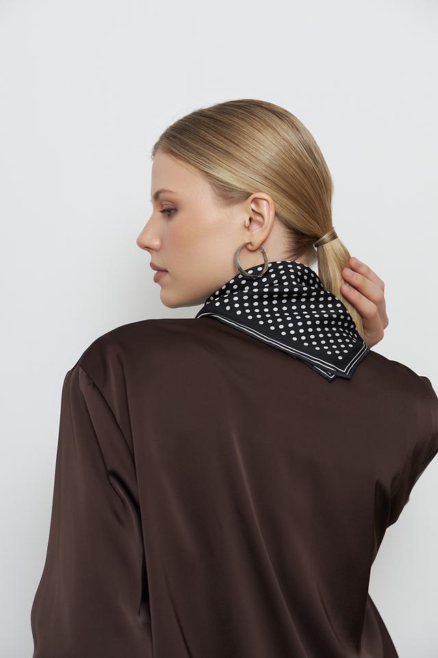 Шарф имеет квадратную форму и может быть повязан различными способами: на шее, на голове, на сумке или даже на запястье. Он станет прекрасным дополнением как к повседневному, так и к вечернему образу.
