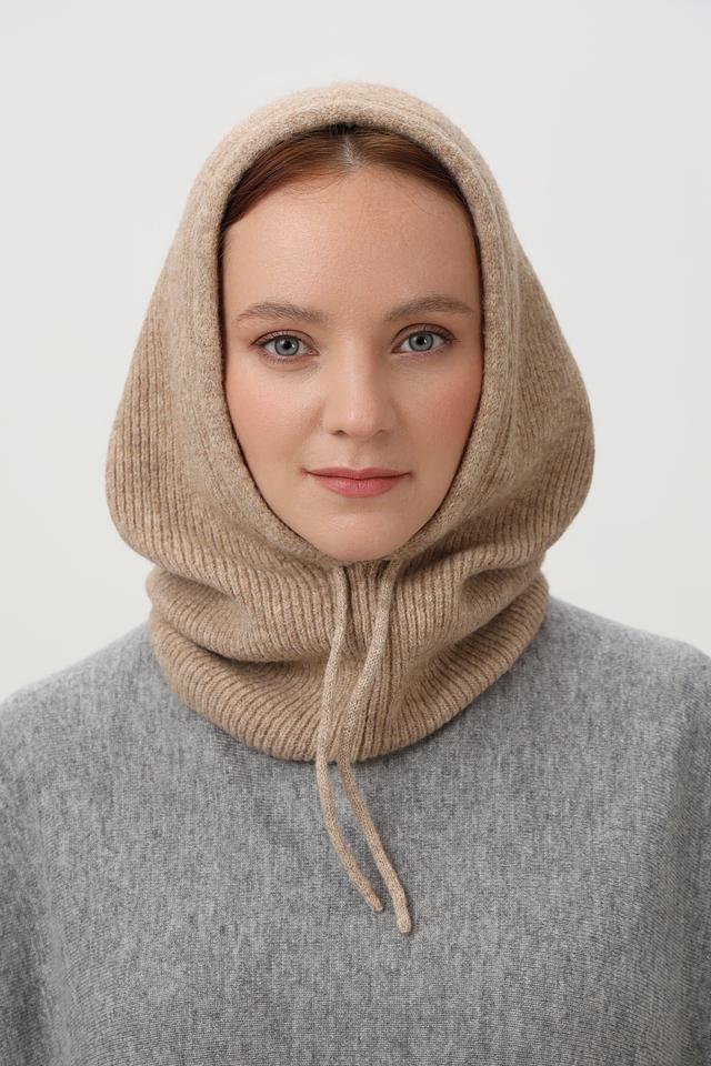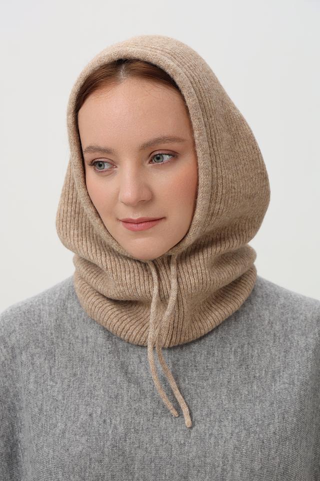 Бежевый цвет шапки универсален и легко сочетается с различными стилями одежды. Вязаная текстура придает изделию уютный и стильный вид. Наличие шнурков позволяет регулировать степень прилегания капюшона к голове, обеспечивая дополнительную защиту от ветра и холода.