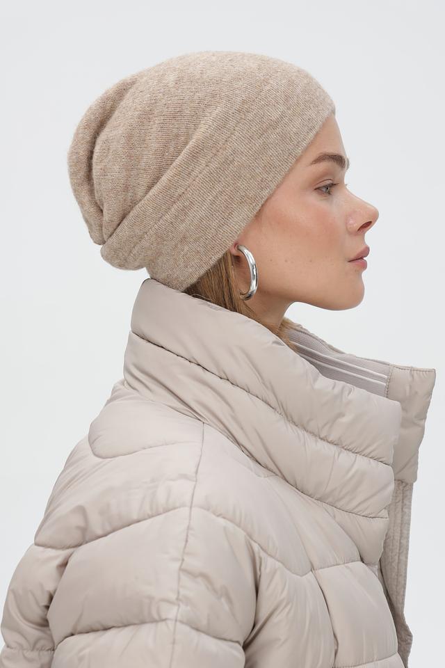 Модель имеет удобную форму, плотно прилегающую к голове, но не сдавливающую. Текстура шапки — мелкая вязка, обеспечивающая комфорт и тепло в холодную погоду.