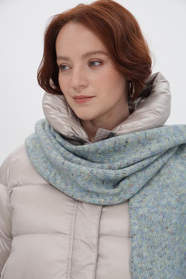 Этот шарф от Fraas – идеальный аксессуар для создания уютного и стильного образа. Шарф выполнен в нежном голубом цвете с красивым меланжевым узором, который придает ему особую текстуру и глубину.