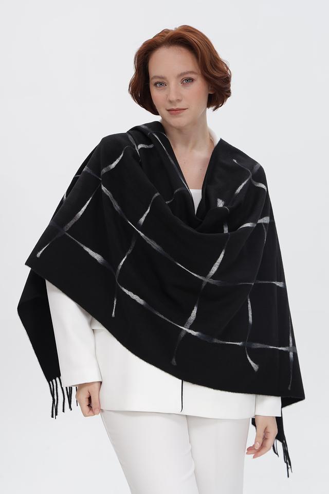 Этот элегантный шарф от бренда Fraas выполнен в классическом чёрном цвете и украшен стильным рисунком в клетку. Шарф имеет прямоугольную форму и дополнен бахромой по краям, что придает ему изысканный вид.