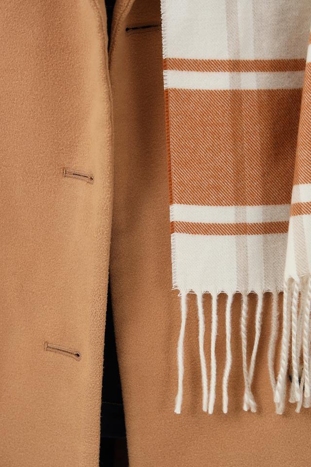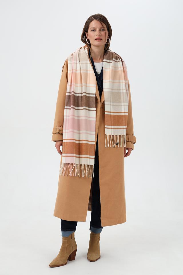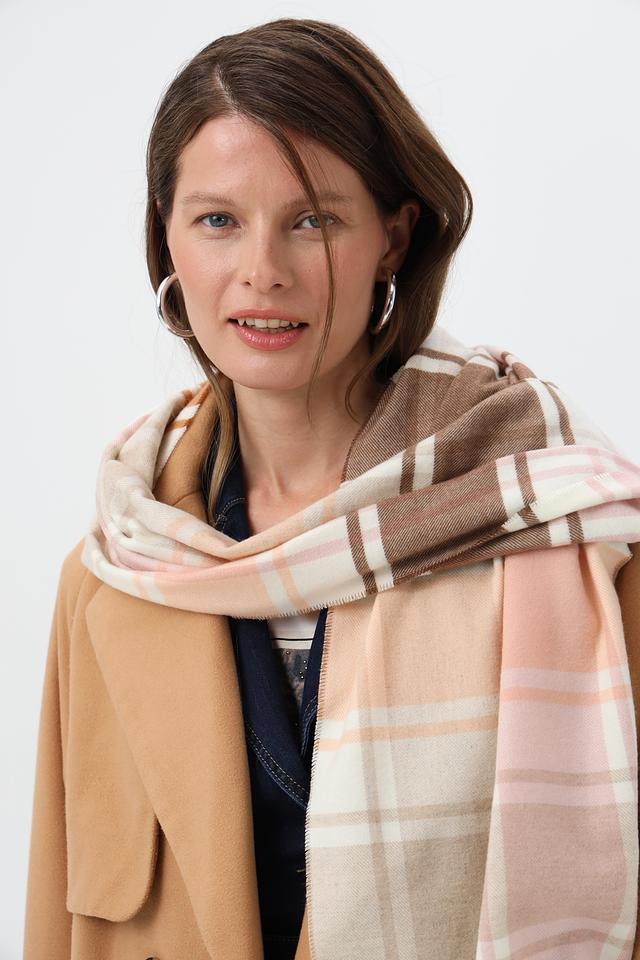Этот шарф от Fraas – идеальный выбор для создания уютного и стильного образа. Шарф выполнен в нежной цветовой гамме с преобладающим бежевым оттенком и выполнен в классическую клетку.