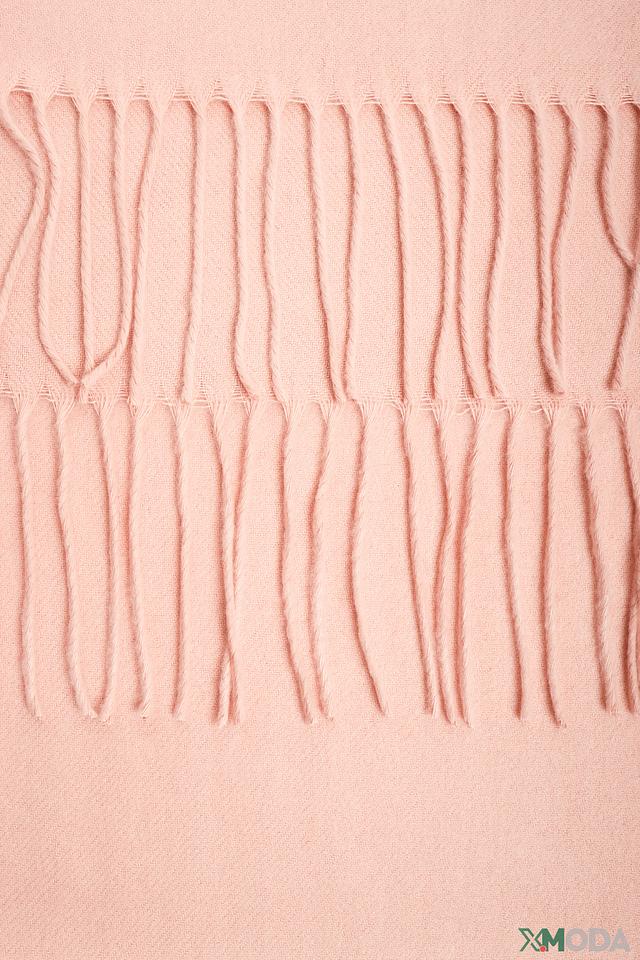 Шарф имеет классическую прямоугольную форму и украшен бахромой по краям, что придает ему изысканный вид. Его длина позволяет носить его различными способами – как вокруг шеи, так и накинутым на плечи.