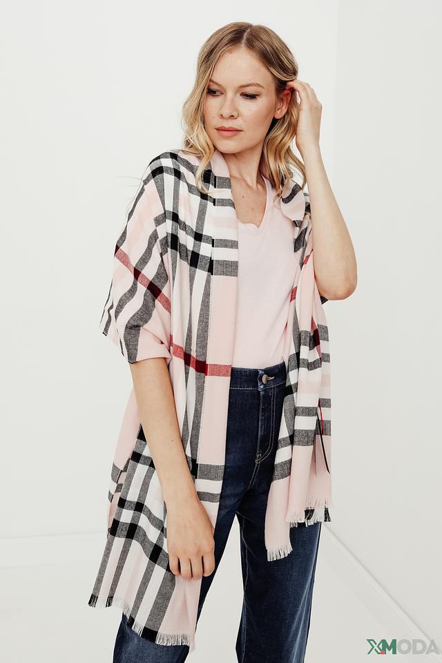 Этот шарф от Fraas – прекрасный выбор для тех, кто ценит элегантность и комфорт. Шарф выполнен в нежной розовой гамме с классическим клетчатым рисунком, сочетающим в себе оттенки розового, белого и черного.
