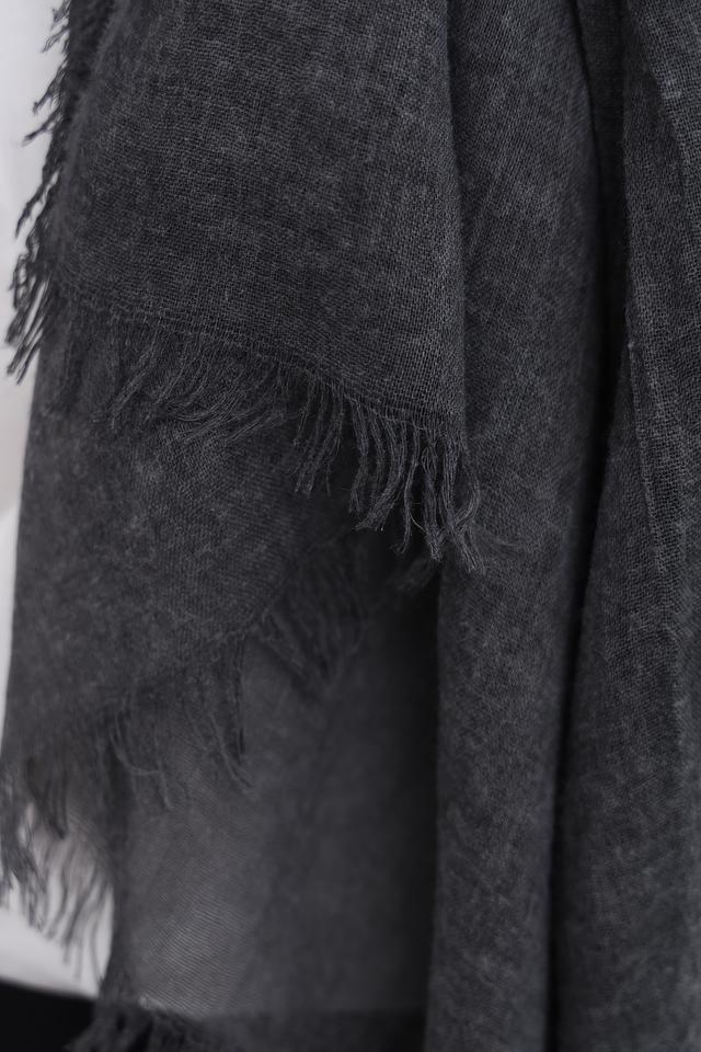 Шарф имеет прямоугольную форму и украшен бахромой по всему периметру, что придает ему изысканный и завершенный вид. Его оптимальный размер позволяет носить его различными способами – как классический шарф, палантин или накидку.