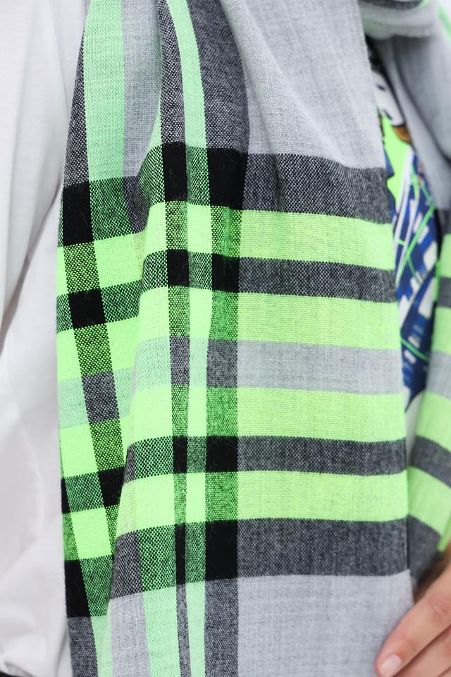 Этот шарф от Fraas – идеальный аксессуар для создания яркого и запоминающегося образа. Шарф выполнен в классической клетке, сочетающей в себе серый, черный и сочный лаймовый цвета.