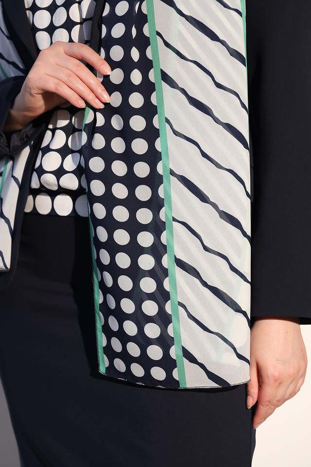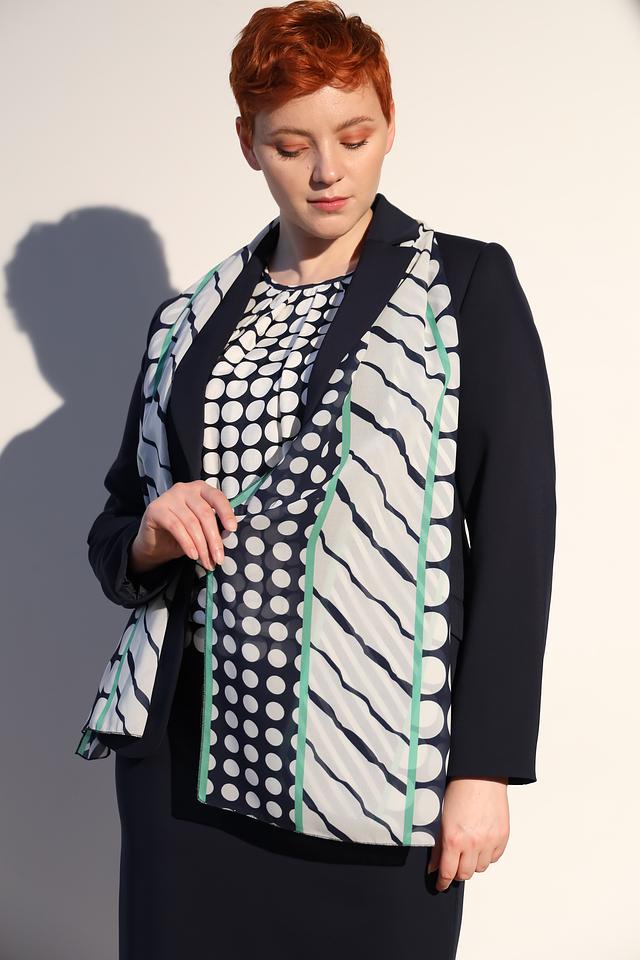 Этот стильный шарф от Frank Walder станет прекрасным дополнением к вашему гардеробу. Шарф выполнен в сочетании белого и мятного цветов с ярким геометрическим принтом, включающим горошек и полосы.
