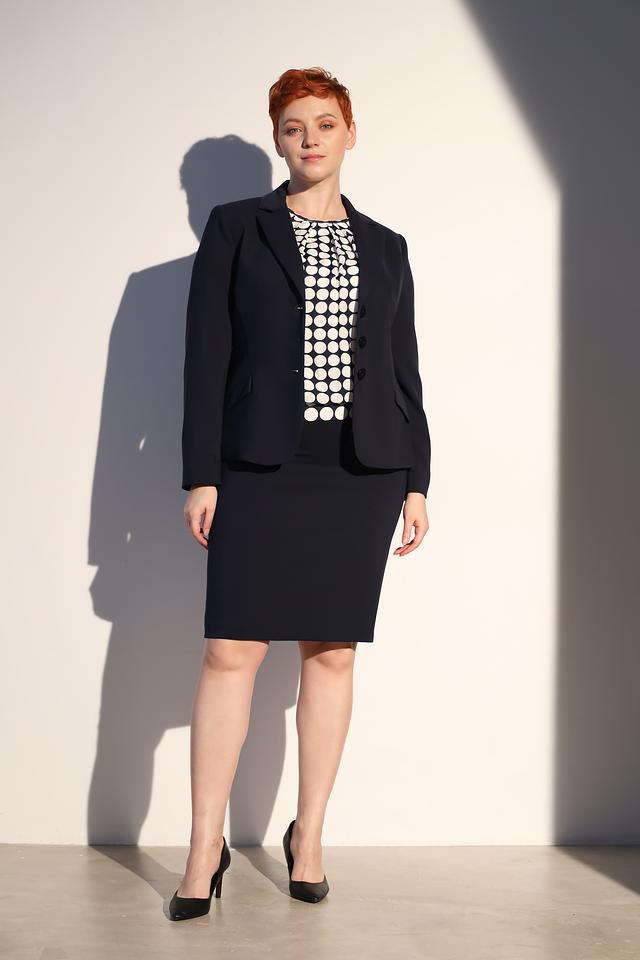 Жакет изготовлен из 100% полиэстера, что делает его устойчивым к сминанию и простым в уходе. Это практичный и элегантный выбор для современной женщины, ценящей комфорт и стиль.