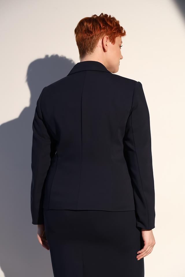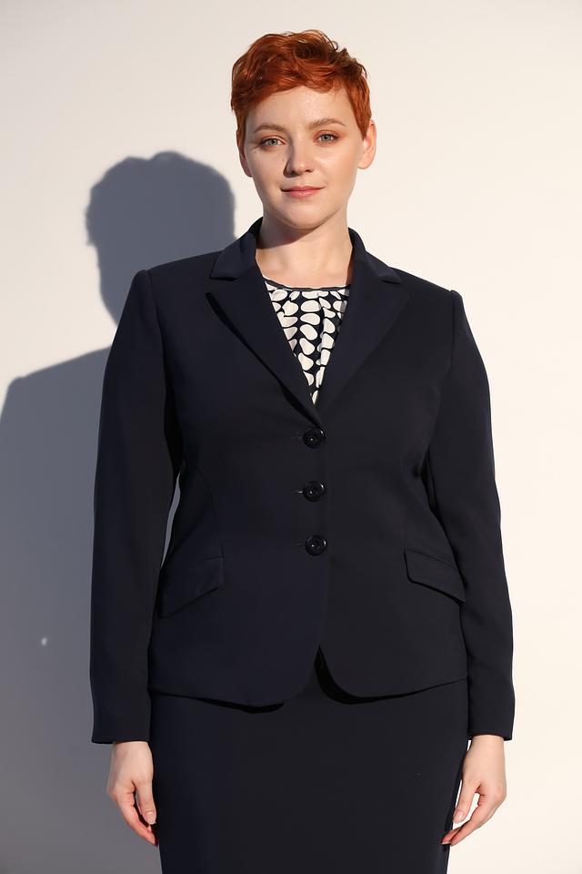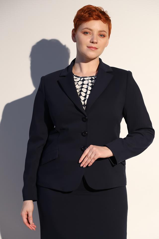 Этот стильный жакет от Frank Walder выполнен в классическом тёмно-синем цвете. Жакет имеет приталенный силуэт, который выгодно подчеркивает фигуру. Однобортная застёжка на три пуговицы обеспечивает удобство и надежность.