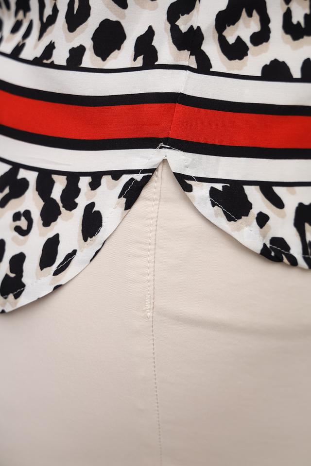Эта блуза от Frank Walder выполнена из мягкой и приятной к телу вискозы. Преобладающий белый цвет в сочетании с эффектным леопардовым принтом и яркими красными полосками делает эту модель особенно привлекательной.