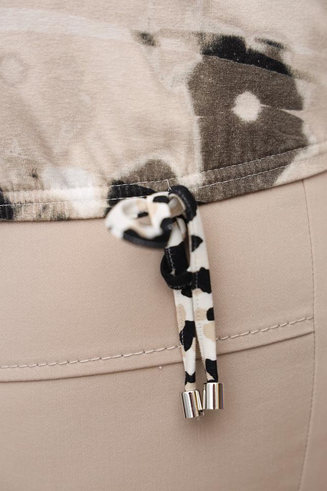 Эта блуза от Frank Walder – отличный выбор для создания яркого и запоминающегося образа. Блуза выполнена в белом цвете и украшена эффектным принтом, сочетающим в себе элементы анималистического рисунка и абстрактных форм.