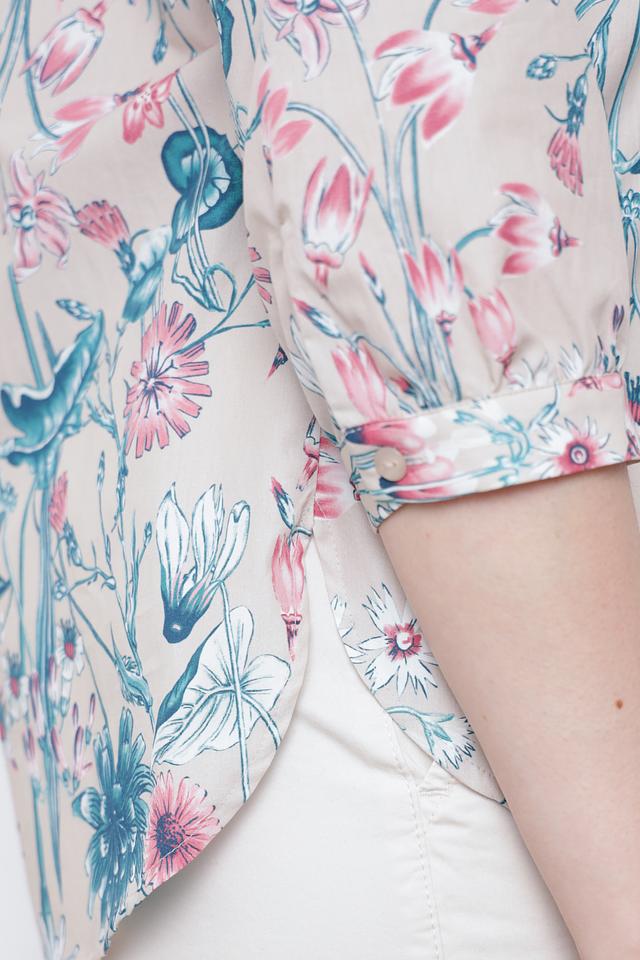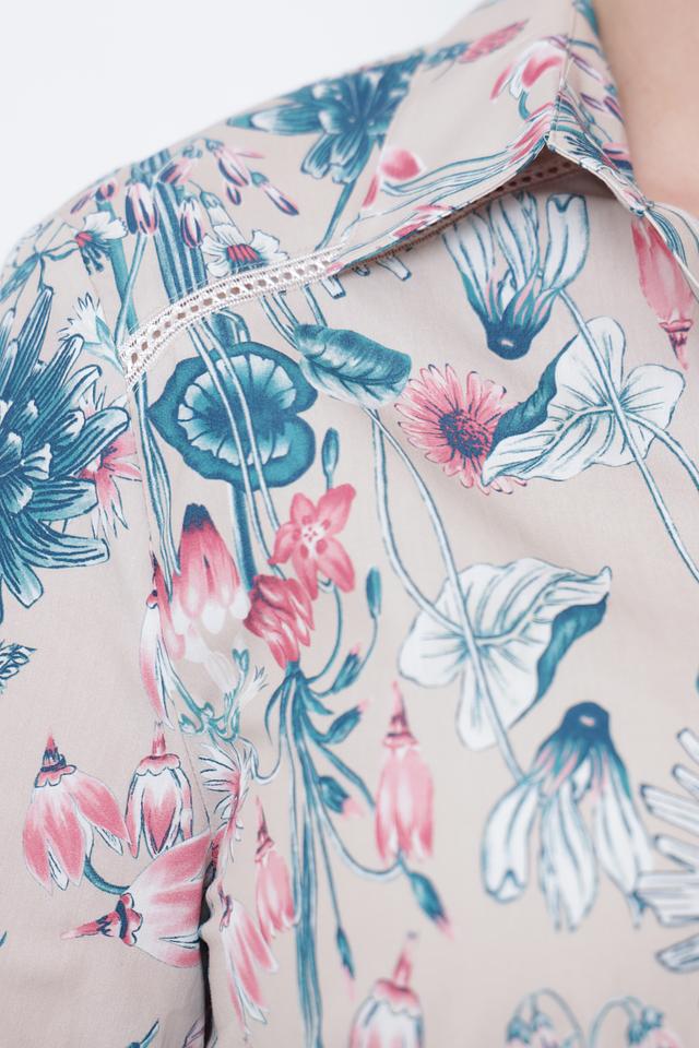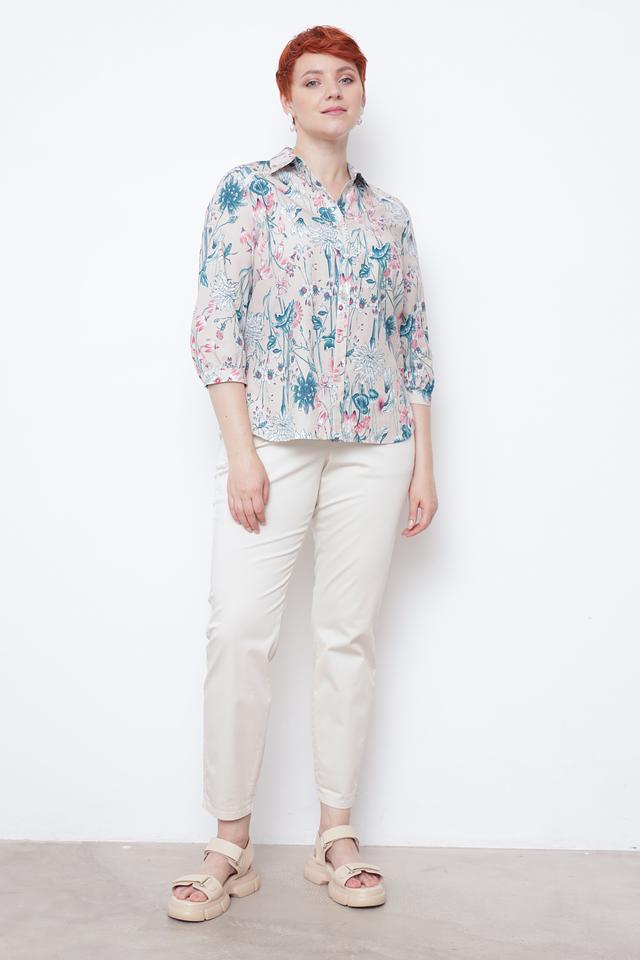 Эта элегантная рубашка от Frank Walder станет прекрасным выбором для создания как повседневных, так и более изысканных образов. Рубашка выполнена в бежевом цвете и украшена ярким цветочным принтом, который придает ей особую женственность и очарование.
