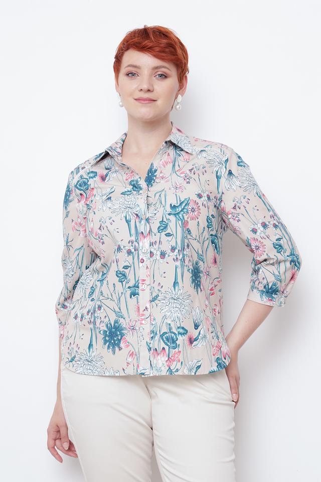 Женская рубашка Frank Walder бежевого цвета с ярким цветочным принтом станет стильным дополнением к вашему гардеробу. Модель выполнена из 100% хлопка, обеспечивая комфорт и воздухопроницаемость. Состав: хлопок 100%