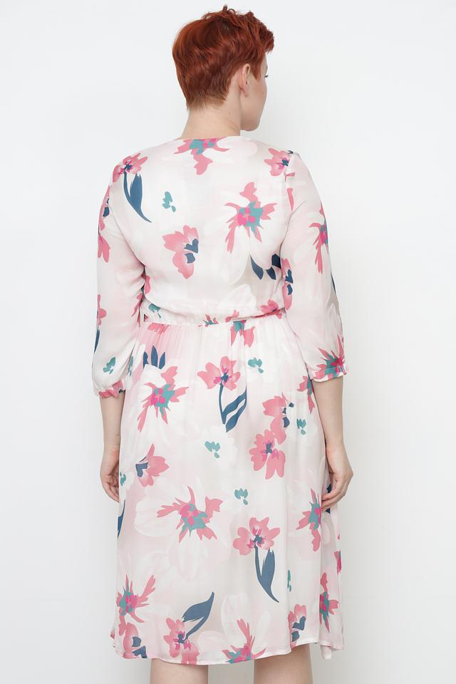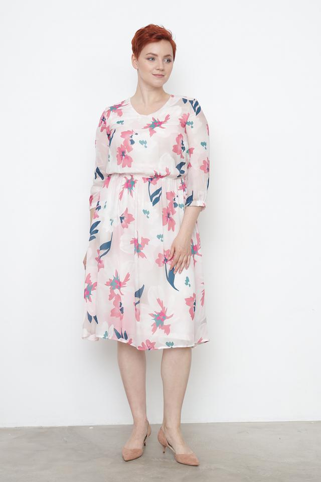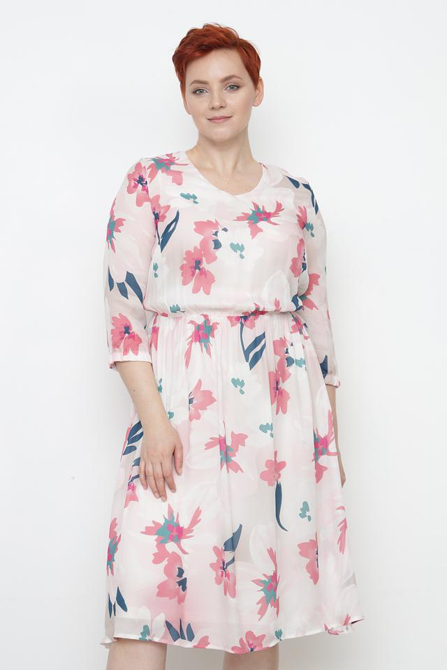 Цветочный принт включает в себя оттенки розового, голубого и зеленого, создавая свежий и женственный образ. Это платье идеально подойдет для летних прогулок, встреч с друзьями или особых случаев.