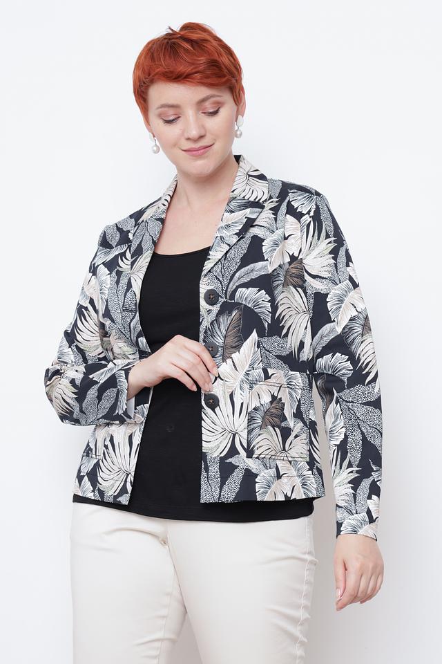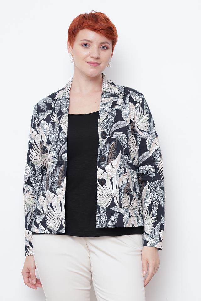 Этот стильный жакет от Frank Walder выполнен в темно-синем цвете и украшен эффектным цветочным принтом, добавляющим образу свежести и оригинальности.