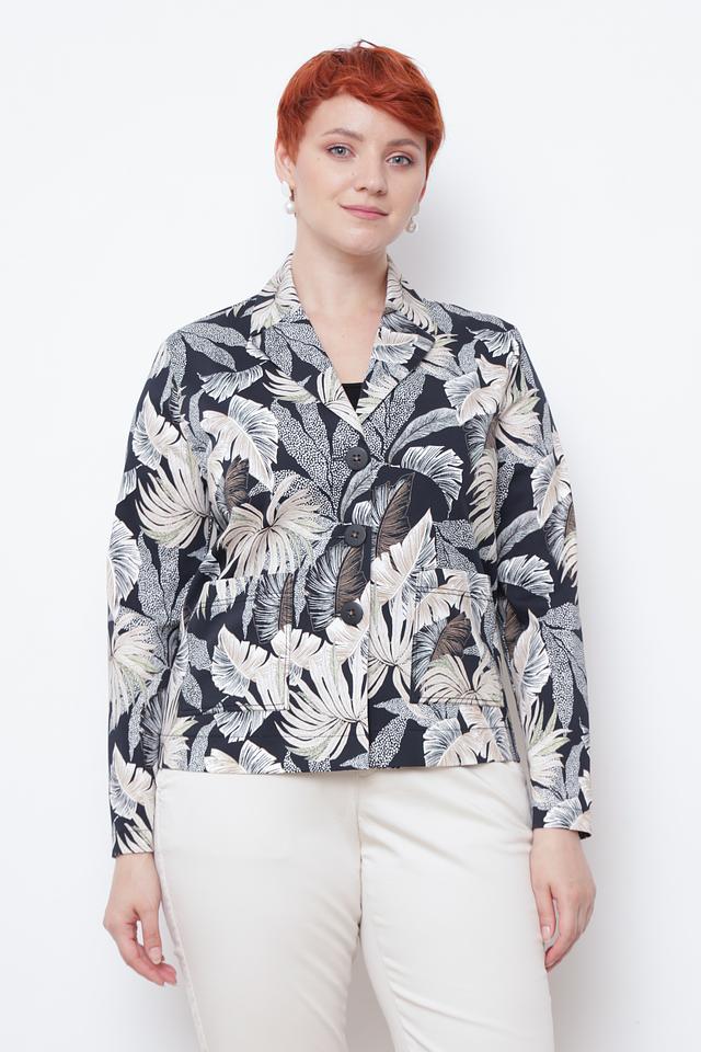 Жакет Frank Walder темно-синего цвета с ярким цветочным принтом станет стильным дополнением к вашему гардеробу. Классический крой и удобная посадка делают его идеальным выбором для создания элегантных образов. Состав: хлопок 97%, эластан 3%