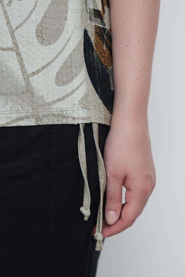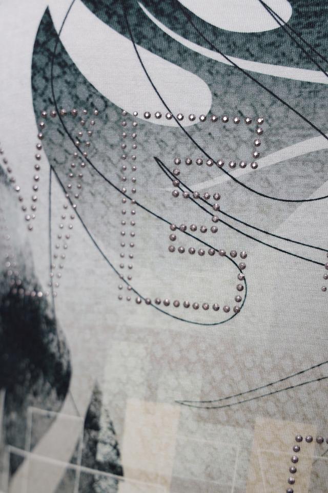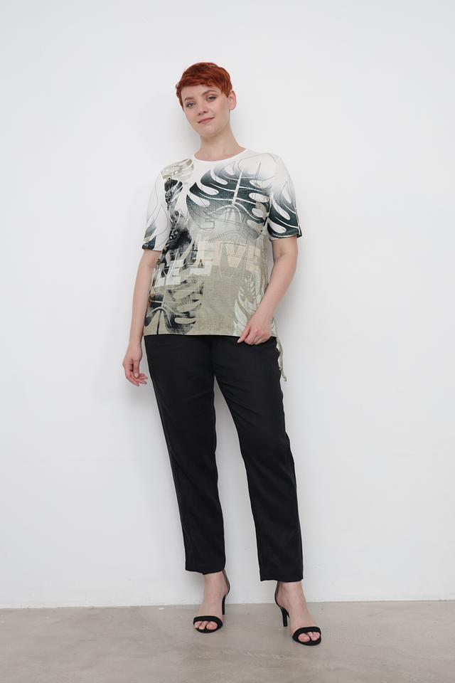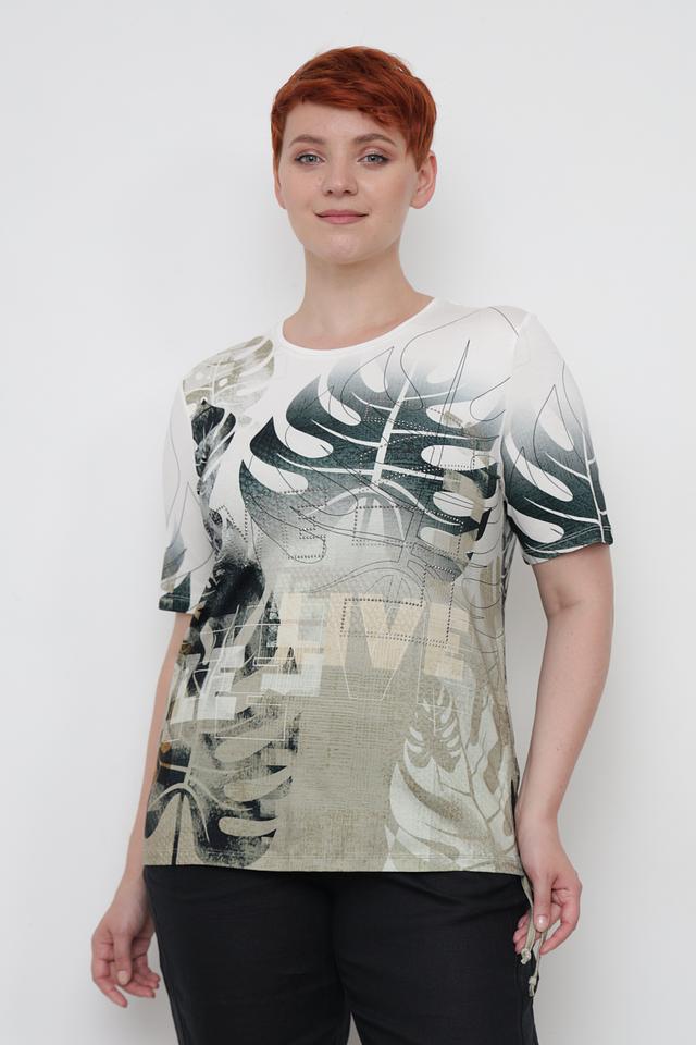Особенностью данной модели является декоративная вышивка бисером, которая добавляет изысканности и оригинальности. Футболка имеет свободный крой, который обеспечивает комфорт в носке.