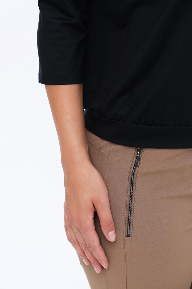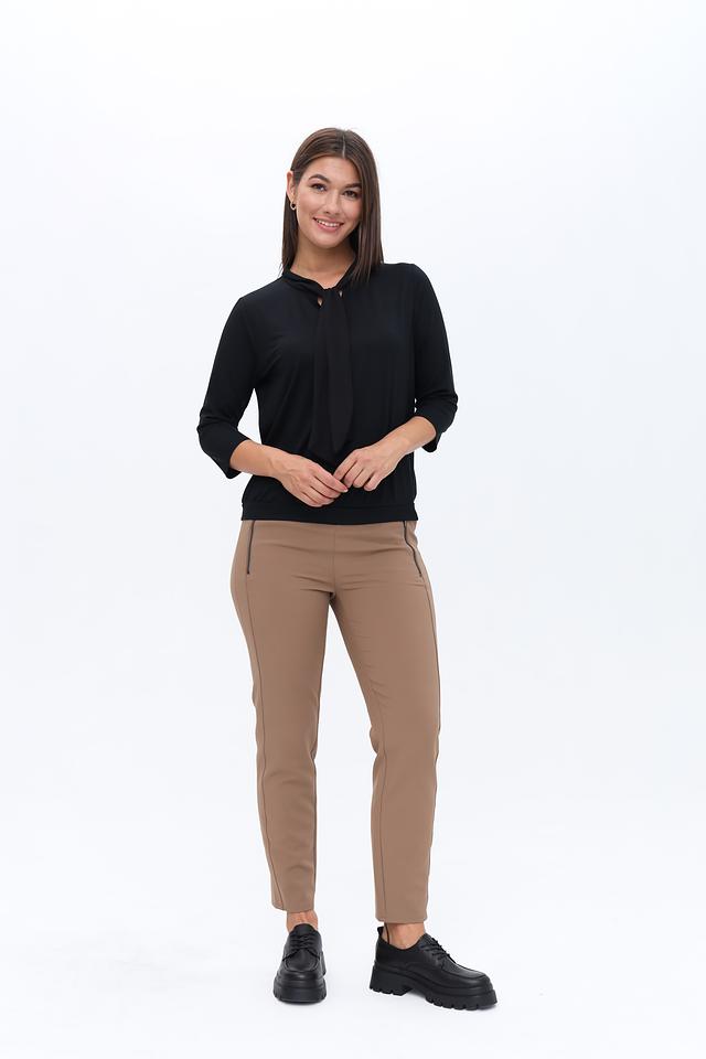 Материал блузы – это сочетание вискозы (93%) и эластана (7%). Вискоза обеспечивает мягкость, приятные тактильные ощущения и хорошую воздухопроницаемость, а эластан – эластичность и комфортную посадку по фигуре. Блуза не мнется и легко ухаживается.