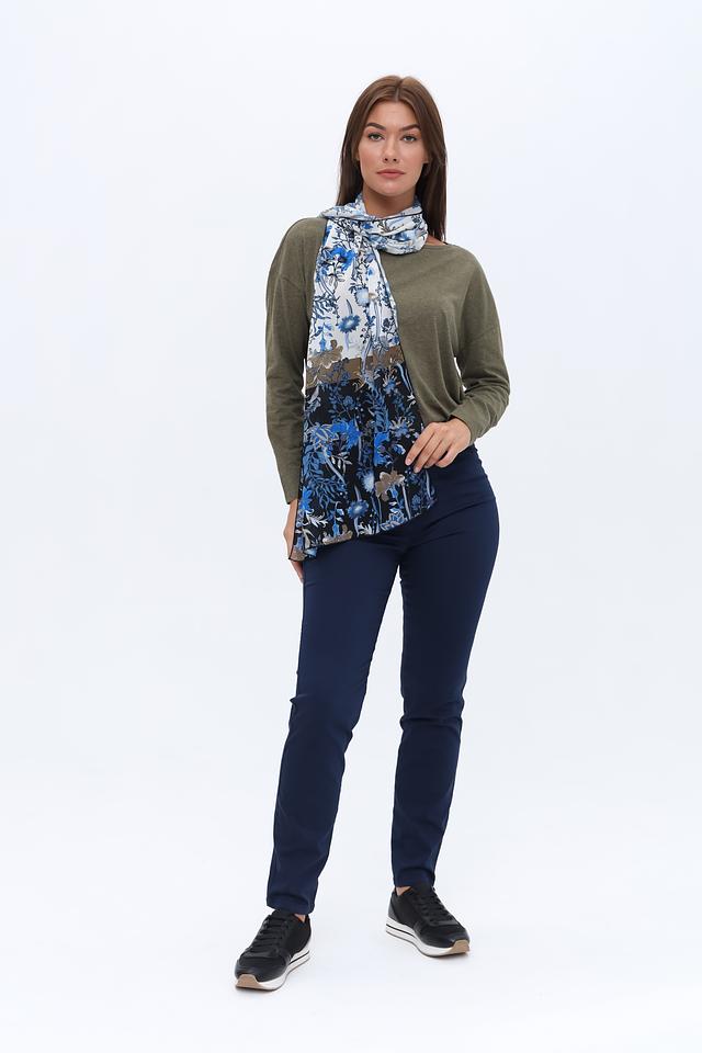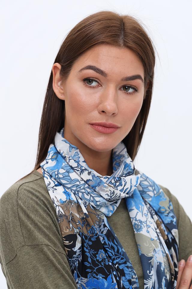 Этот шарф от Frank Walder – идеальный аксессуар для создания яркого и запоминающегося образа. Шарф выполнен в синих тонах и украшен красочным цветочным принтом, который добавляет ему изысканности.