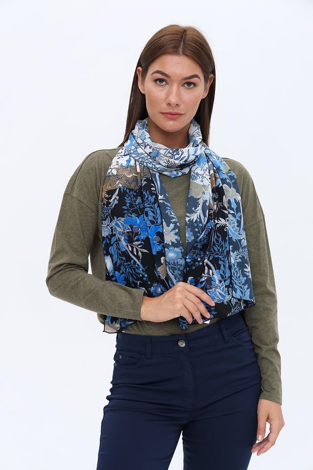 Шарф Frank Walder синего цвета с ярким цветочным принтом станет стильным дополнением к вашему образу. Изготовлен из 100% полиэстера, что обеспечивает легкость и приятные тактильные ощущения. Состав: полиэстер 100%
