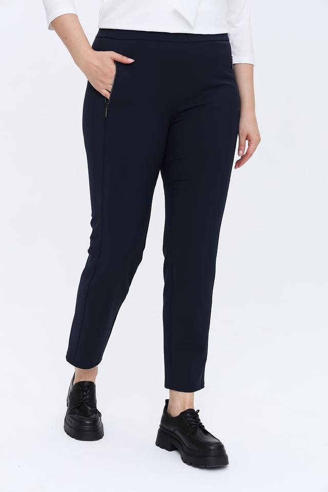 Особенностью данной модели являются функциональные молнии на карманах, которые придают брюкам современный и лаконичный вид. Прямой крой и умеренная посадка делают эти брюки универсальными и подходящими для различных типов фигуры. Они идеально сочетаются с блузками, рубашками и топами, создавая стильные и элегантные образы.
